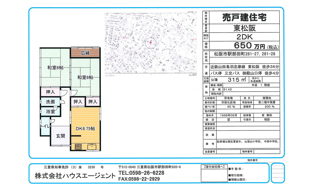 | ■ 交通 | 近鉄山田鳥羽志摩線 東松阪駅 徒歩36分 バス停 三交バス 御殿山口停 徒歩4分 |
